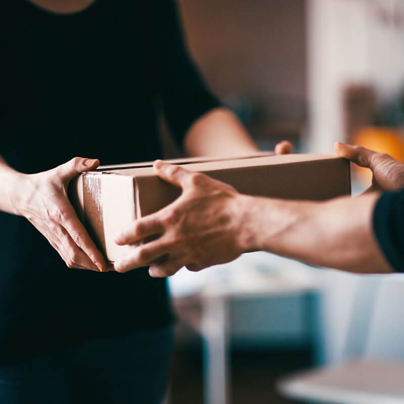 Print out your order confirmation email, then put it inside the box.