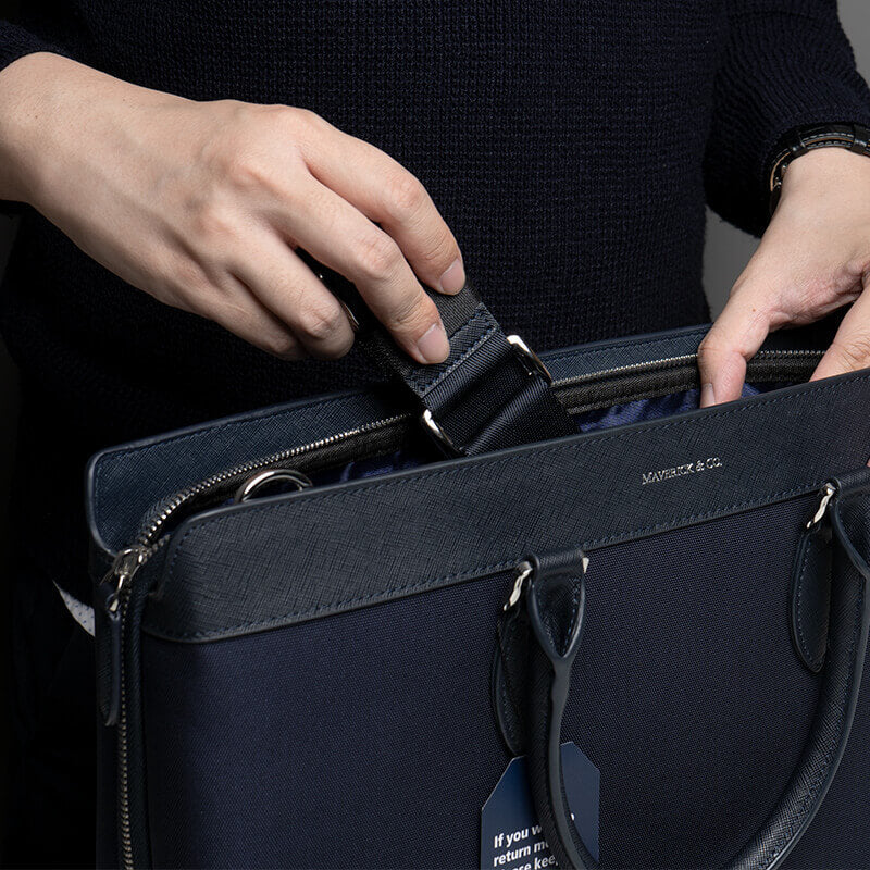 For briefcase and weekender, please ensure the shoulder strap is placed inside the bag.